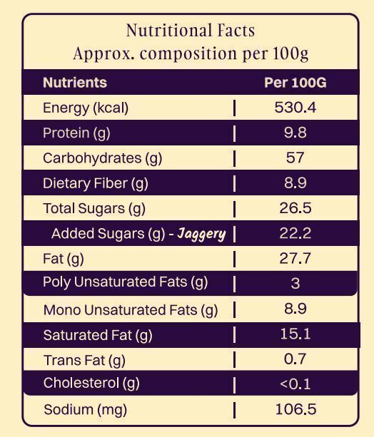 Start your morning with wholesome energy from nutrient-dense millets and oats combined with crunchy nuts and sweet jaggery. Free from refined sugars and preservatives, these cookies deliver complex carbs, fiber, and essential nutrients to keep you energized and satisfied.